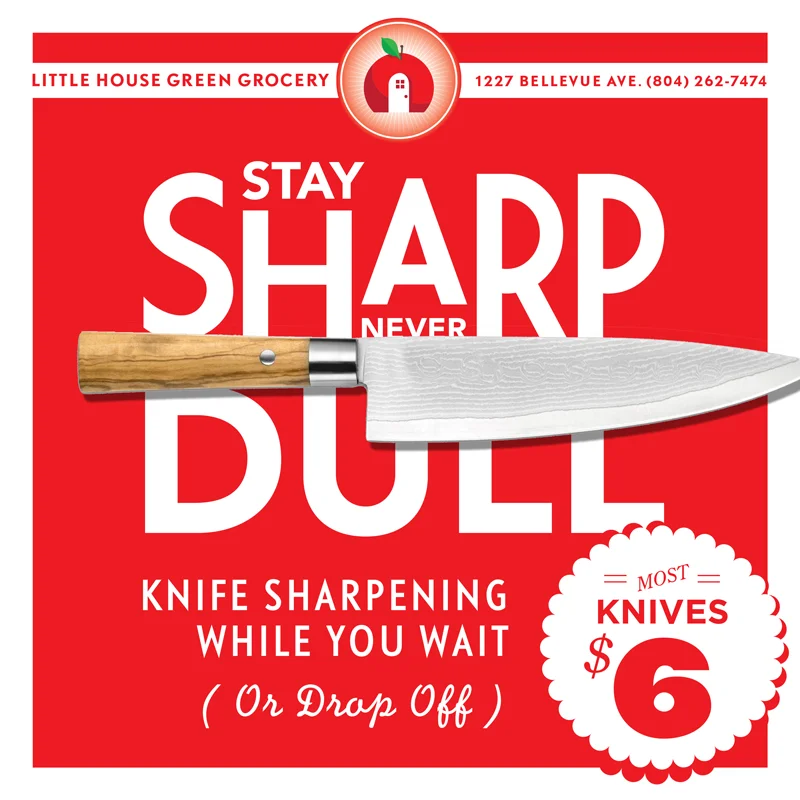 Mr. Leonard"s knife sharpening service will be at Little House to sharpen your knives and garden tools!