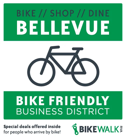 Bellevue is now a Bicycle Friendly Business District! Every Saturday, many area merchants will give discounts to riders- just let us know that your rode your bike in and save 10% off $10 or more!